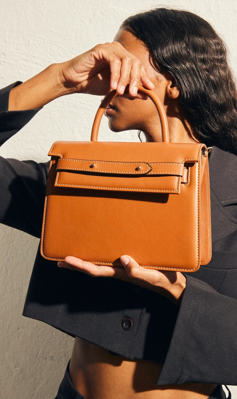 Functional and compact, the M bag by Alohas is the retro-inspired companion for the modern girl on the go. Itโs crafted from tan leather in a structured silhouette and finished with gold popper buttons on the flap. This baby is fully equipped for day-to-night duties thanks to its handheld-to-crossbody versatility – team yours with casualwear and fancy ensembles alike.