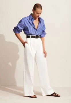 The High Jean by Anine Bing is a relaxed, ’90s-inspired jean constructed from a rigid organic cotton blend in a classic blue wash with vintage-inspired grinding, hand sanding, and highs and lows throughout. The Hugh Jean features a wide leg and raw-edge hem.
