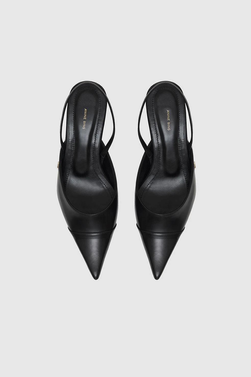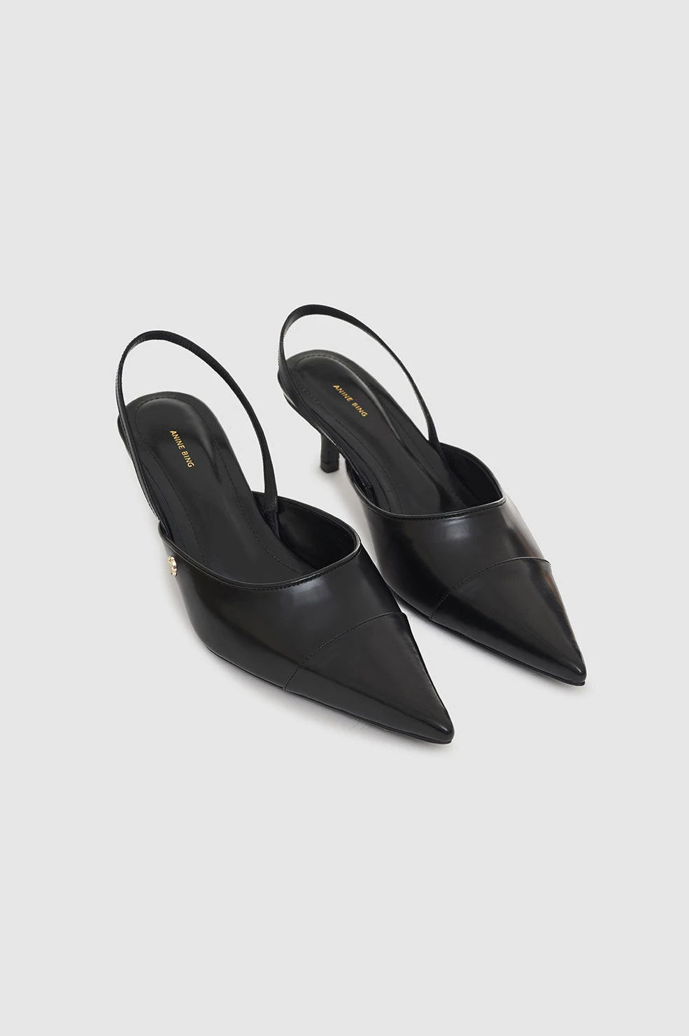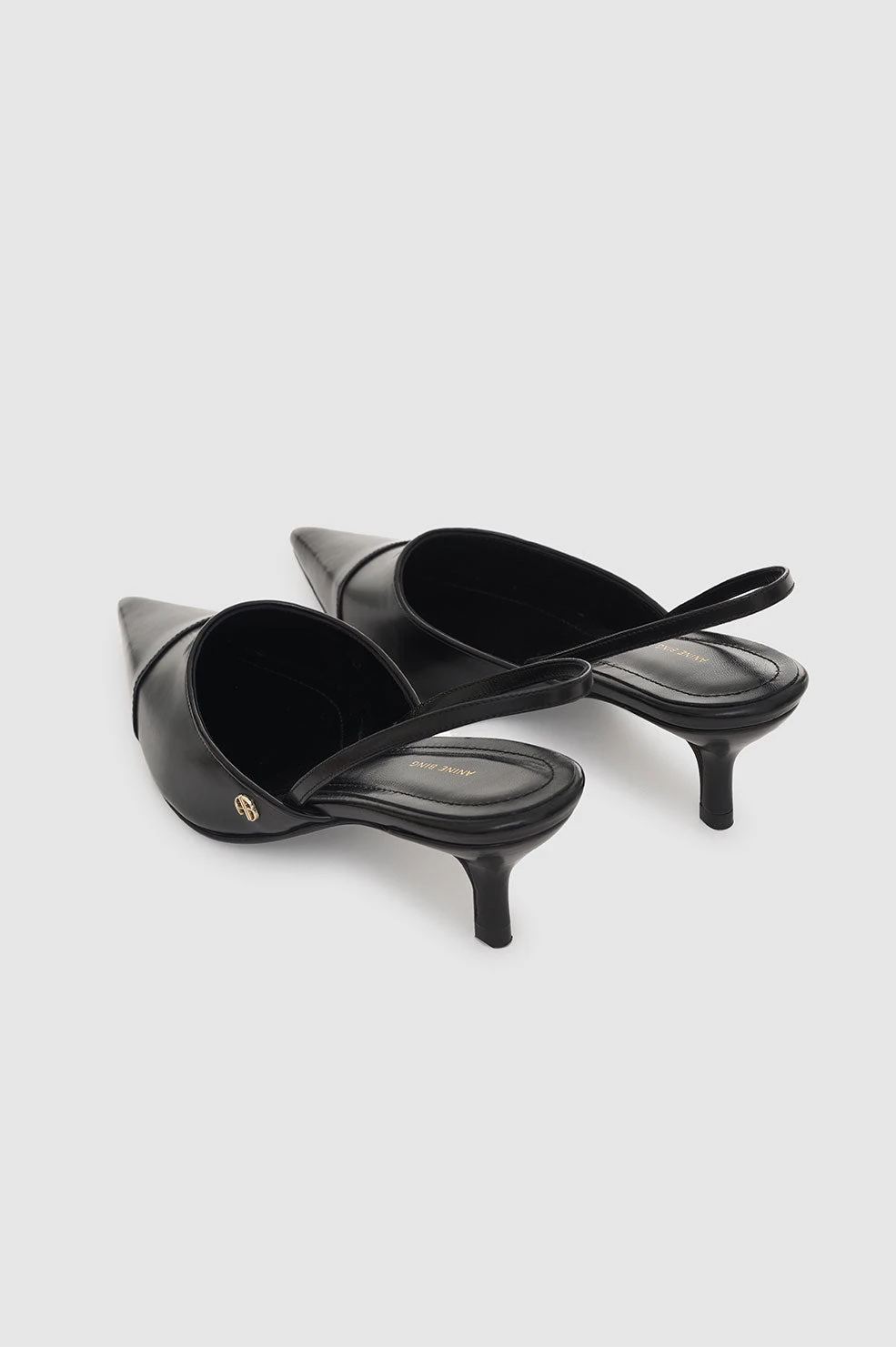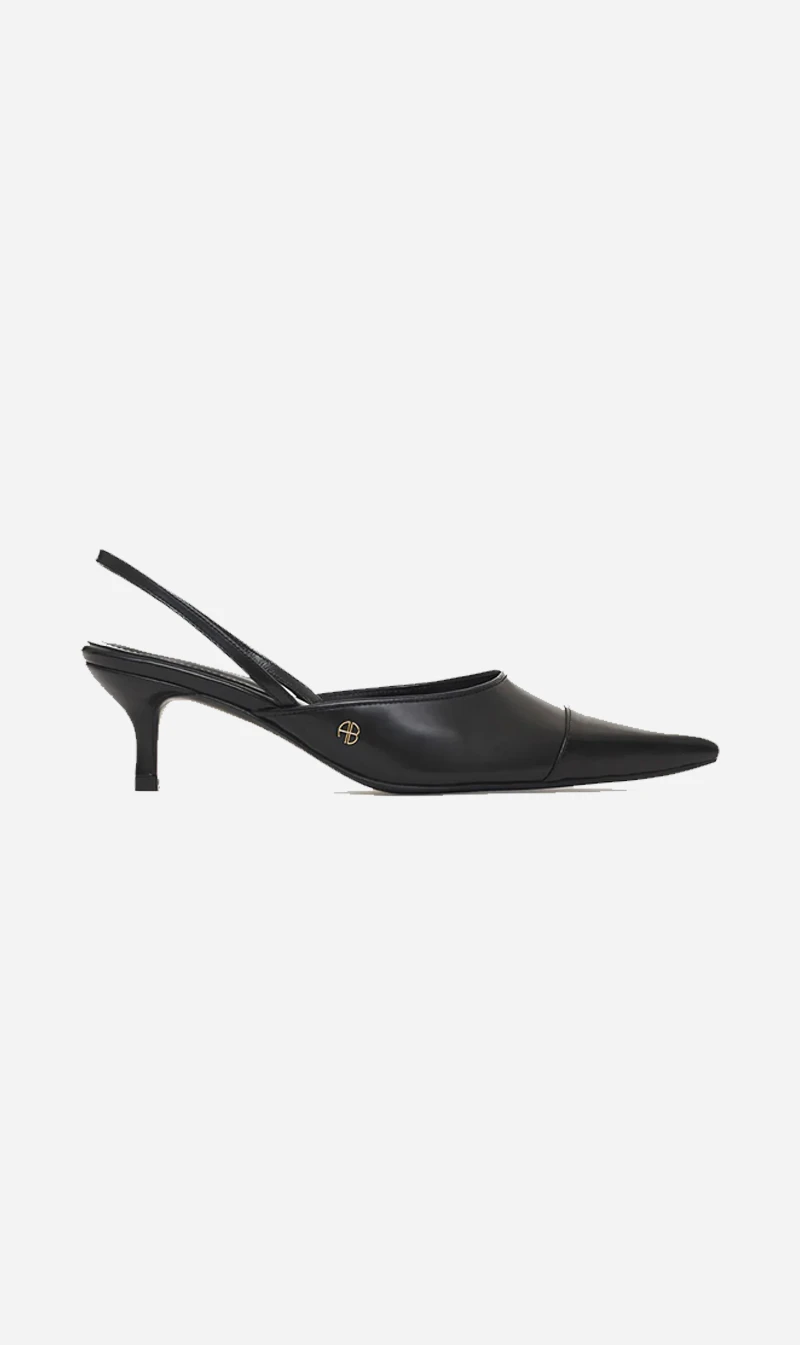 A sophisticated kitten heel crafted in timeless smoothe leather, the Willa Slingback Heel by Anine Bing is a take on the traditional slingback style and features a toe cap and dainty ankle strap with hidden elastic detailing for a secure and comfortable fit. Accented with an ANINE BING monogram in gold-tone hardware. Pair with loose-leg denim for the ultimate in laidback yet elevated style.Β