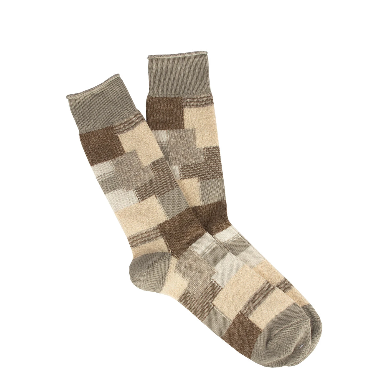 Anonymous Ism, hailing from Japan, make some of the best and brightest socks and underwear around. The Patchwork Crew Socks are made from a medium weight pattern knit.
