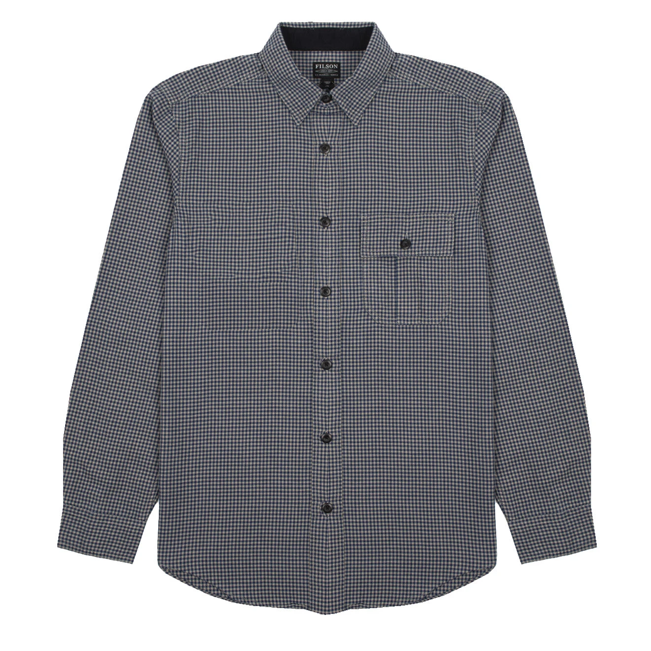 Rustic shirt from Filson made from 3.9oz cotton oxford featuring a spread collar, classic button front, faux horn buttons and extra long sleeve placket.