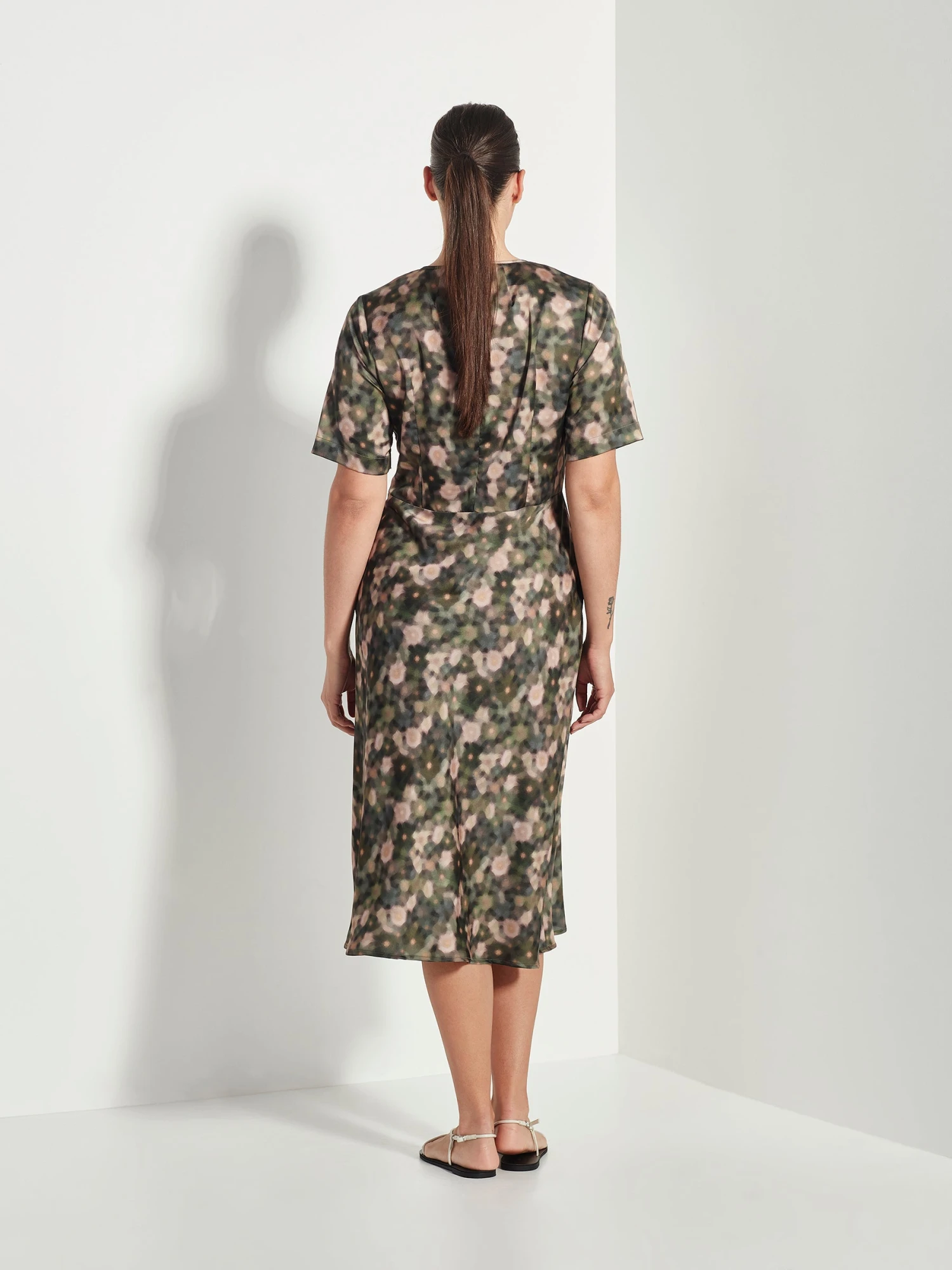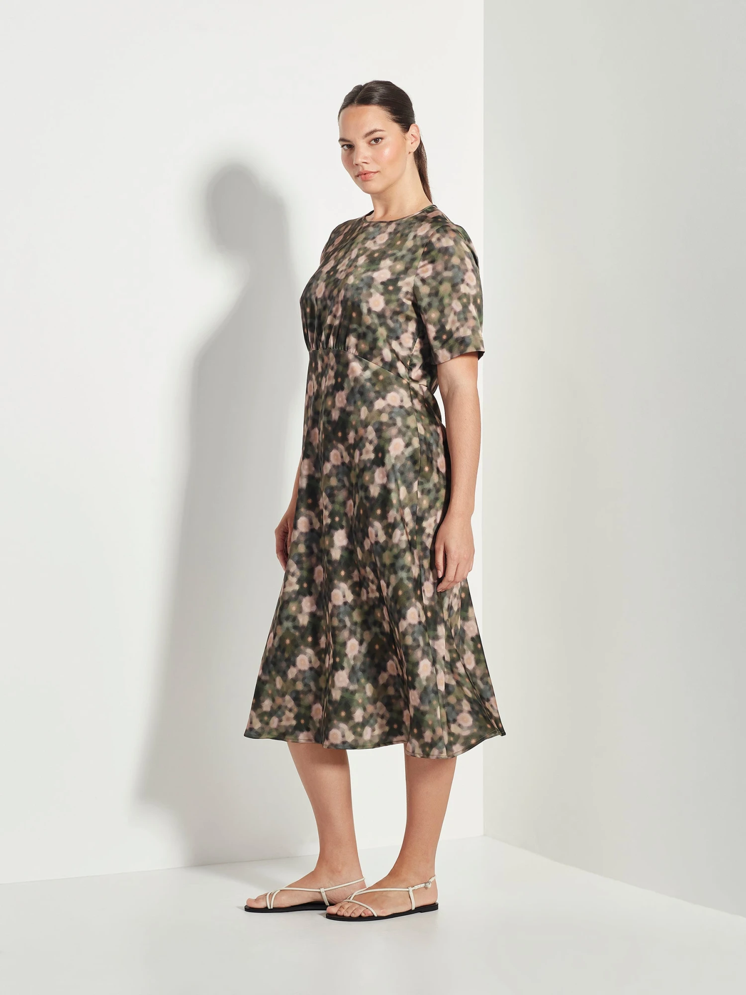 The Juliette Hogan Carmela Dress in Windflower is a versatile look for any occasion.Β Featuring a midi-length skirt cut on the bias, skimming the body, and falling from a gathered bodice. With a t-shirt sleeve cut from a rich satin fabric that drapes beautifully off the body.Β
