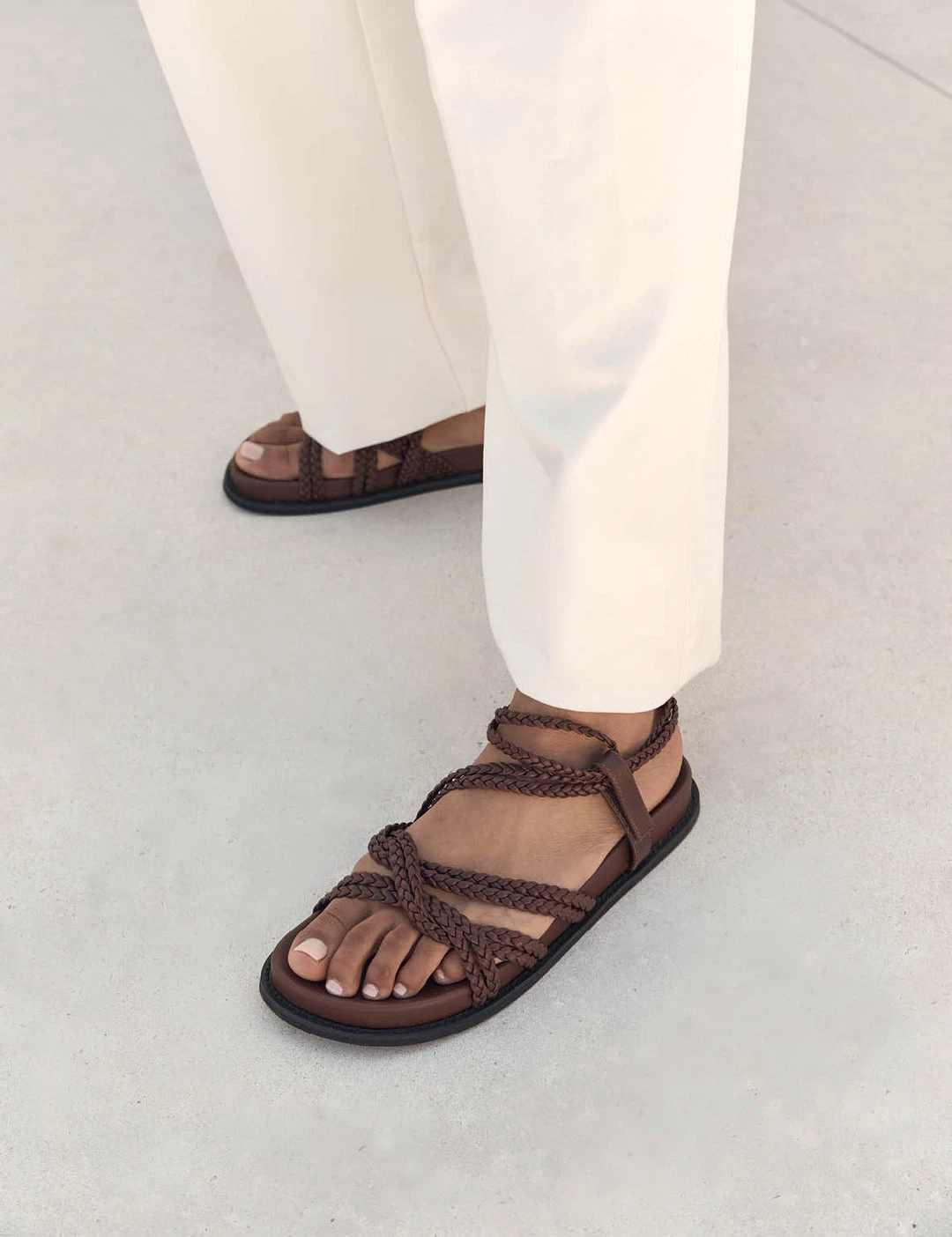 The Plaited Sandal from La Tribe is a newly imagined summer style, featuring hand-braided, criss-cross leather straps to create a unique silhouette. This style has a moulded footbed for added comfort and is finished with a rubber sole for durability, making these your best friend this summer for all occasions.