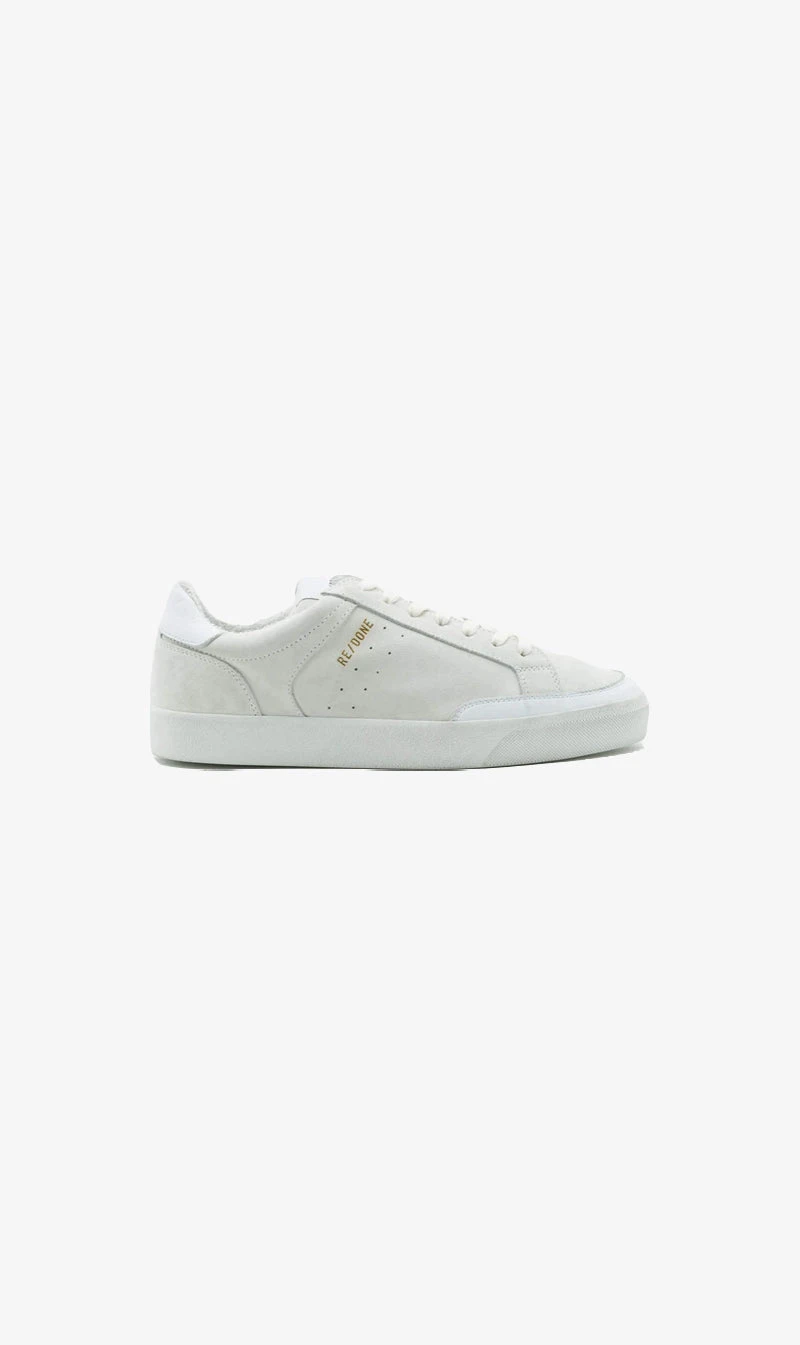 The Re/Done Skate Shoe in Whiet Suede. A 90s Skate Shoe, inspired by the decade’s most iconic subculture, finished in all over suede with a vintage wash.