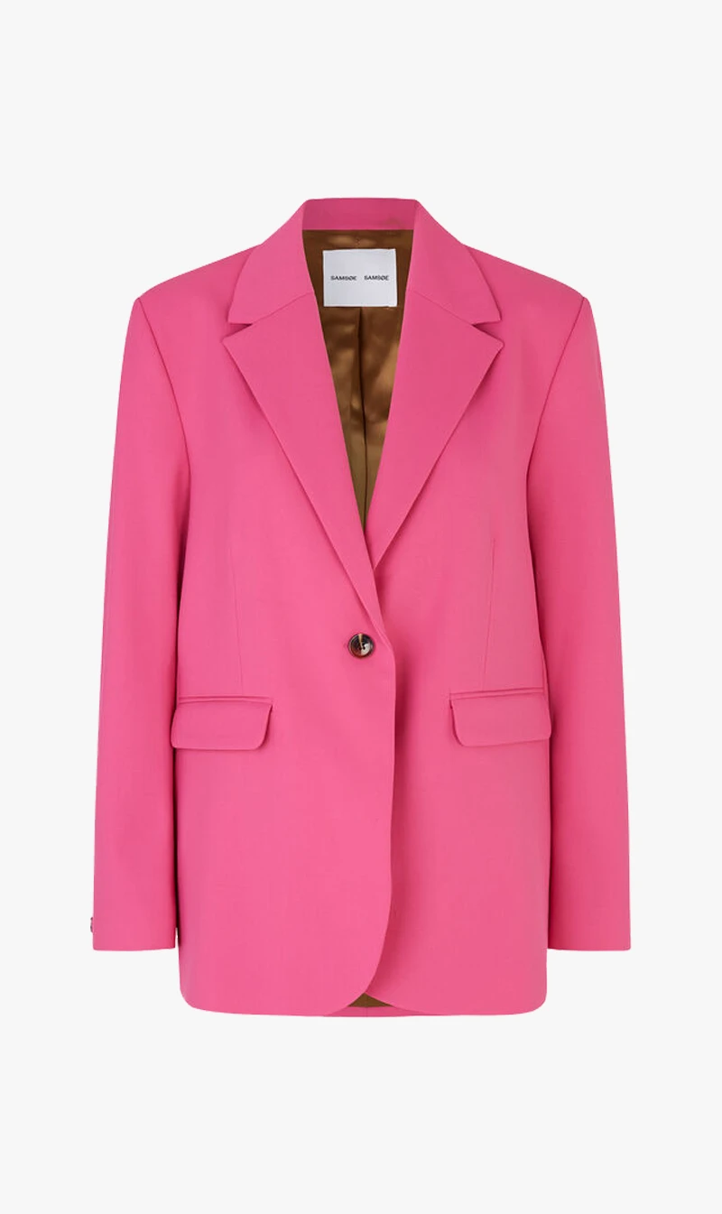 The Samsoe Samsoe Haven Blazer in Fandango Pink is an oversized fit, a single-breasted blazerΒ that adds a fun pop of colour when you put it on!Β It has flapped front pockets and an inside pocket. Pair this with your favourite tailored pants to brighten up your work day, or a dress and heels to take it to night.