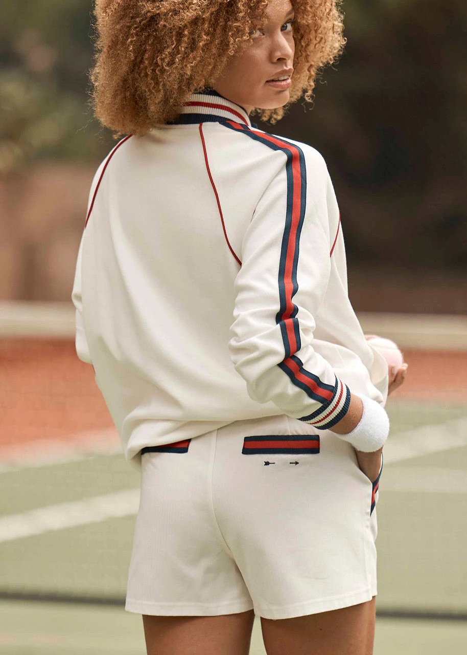 The Upside Love Charlie Short in White is a versatile addition to your wardrobe. This 70s-style design is a comfortable yet chic option. Pair it with the matching Love Rory Bra in White or the Palmer Louie Sweater in White for a tennis-inspired look.