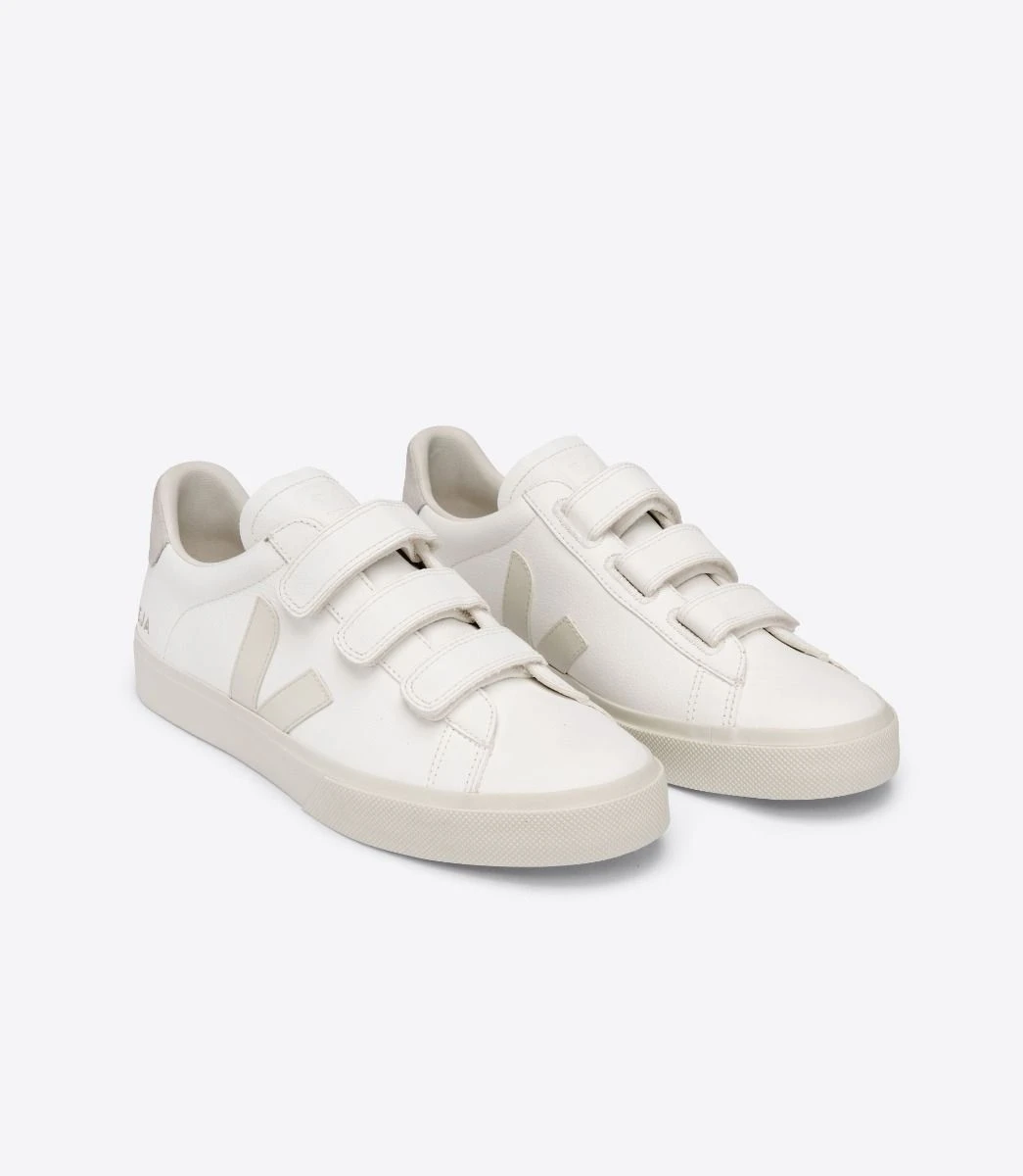 The Veja Recife Chromefree in Extra White Natural is the perfect on-the-go sneaker. Sustainably crafted so that every point of production has a positive impact. Designed with three velcro straps for easy wear and comfort. Pair yours with anything from jeans, tailored pants or dresses.